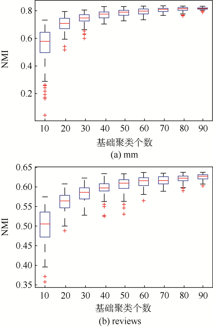 | 图 6 基础聚类数量的影响 Fig. 6 Impact of number of basic partitionings |
