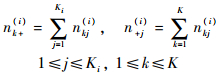 根据式(1),效用函数定义在2个划分π和πi上,因此可视为2个划分的相似度的一个测度。采用表 1的可能性矩阵来辅助效用函数定义。如表 1所示,π和πi分别有K和Ki个簇。nkj(i)表示πi中的簇Cj(i)与π中的簇Ck共同包含的样本数目,则