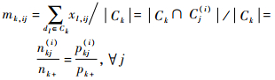 令pkj(i)=nkj(i)/n,pk+(i)=nk+(i)/n,p+j(i)=n+j(i)/n,可得标准化后的可能性矩阵,并据此定义效用函数。令离散分布Pk(i)=(pk1(i)/pk+, pk2(i)/pk+, …, pkKi(i)/pk+), ∀k, P(i)=(p+1(i), p+2(i), …, p+j(i), …p(i)+Ki),由此导出定义1。