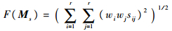 为了更好地理解上述结论,接下来直接度量基础聚类的多样性。令sij=NMI(πi, πj)表示基础聚类πi和πj的相似度。定义关联加权矩阵Mw=[wiwj](1≤i, j≤r)和加权相似度矩阵Ms=[wiwjsij]。F表示矩阵的Frobenius范数。则基础聚类的多样性测度可定义为